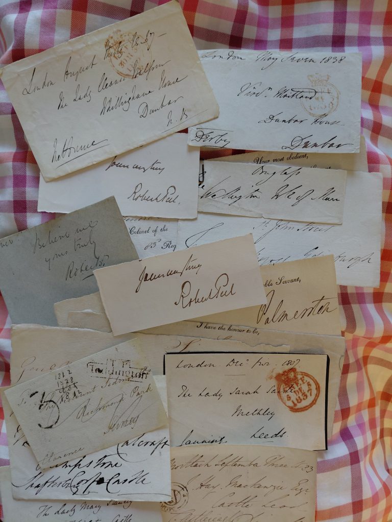 The signatures date from 1837 to 1849, which suggests that Robert Balfour WR, who inherited the estate in 1837, collected them. His younger brothers moved to Leamington Spa with their mother, and he may have sent some signatures to Balcarres or John for their collections. However, it’s not impossible that he, as a fatherless young man, found association with these relics of the great men of his time consoling.
