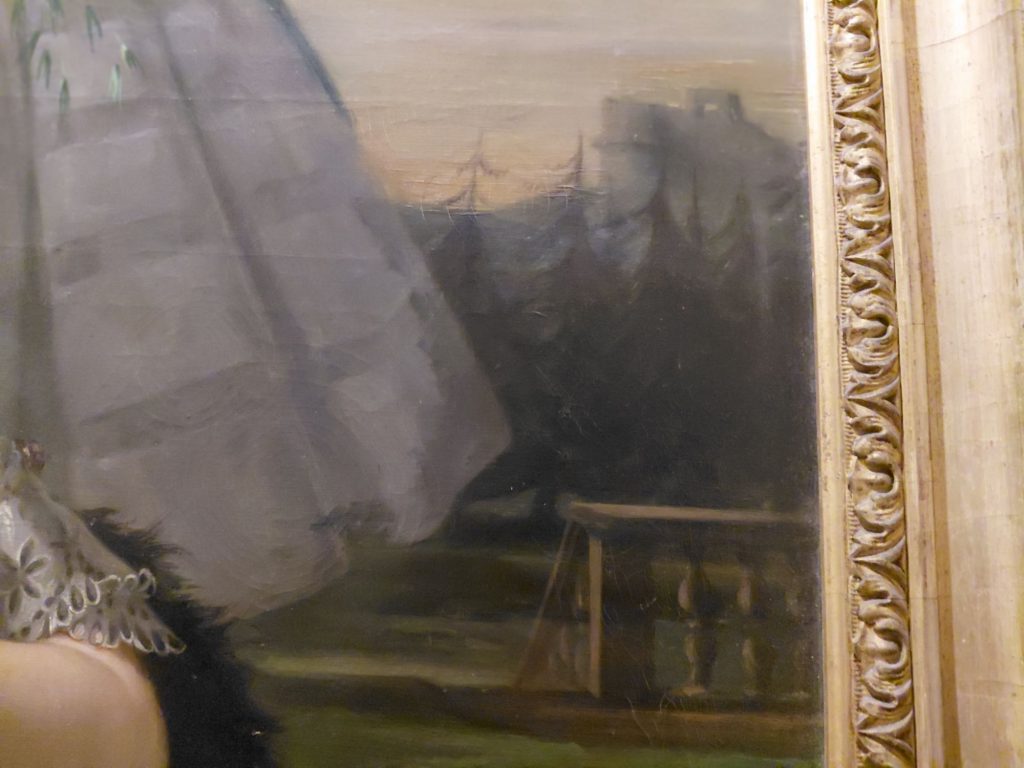In the background, next to Elizabeth’s skirt is a romantic castle, surrounded by pines. The artist is evoking the children’s Scottish heritage!