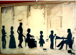 To the left of the picture we see two figures – Mrs Martin and William. These silhouettes are slightly smaller scale, suggesting they were added later, probably after William’s return from Italy. This family group is a poignant record of a brief period before tragedy struck.