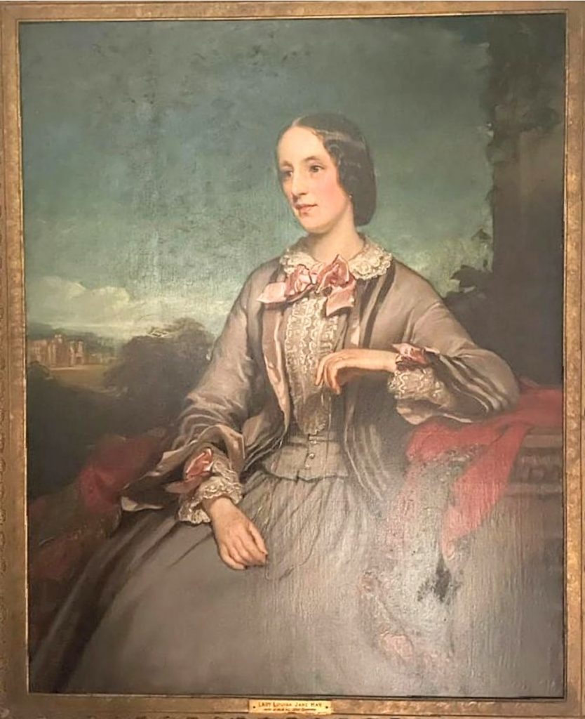 Lady Louisa Hay, by Sir Daniel MacNee PRSA (1806-1882) with Whitehill house in the background.