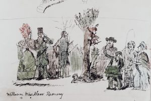 The family albums contain a few such sketches by the young William, which were evidently prized. They show an eye for a humorous situation, and cast some light on his affective state. This lively scene, of an organ grinder’s monkey making a bid for freedom, may even have been spotted in Tillicoultry!